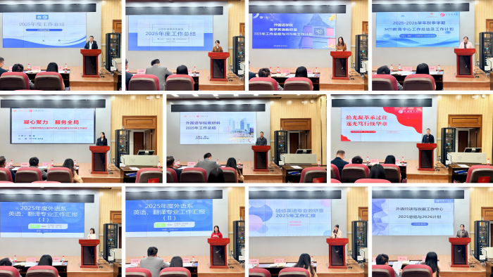 2026年1月9日下午,广西医科大学外国语学院在综合楼9楼报告厅召开2025年秋季学期期末工作通报会,全面总结年度工作,部署新一年重点任务。会议由学院党委书记主持,全院教职工参会。