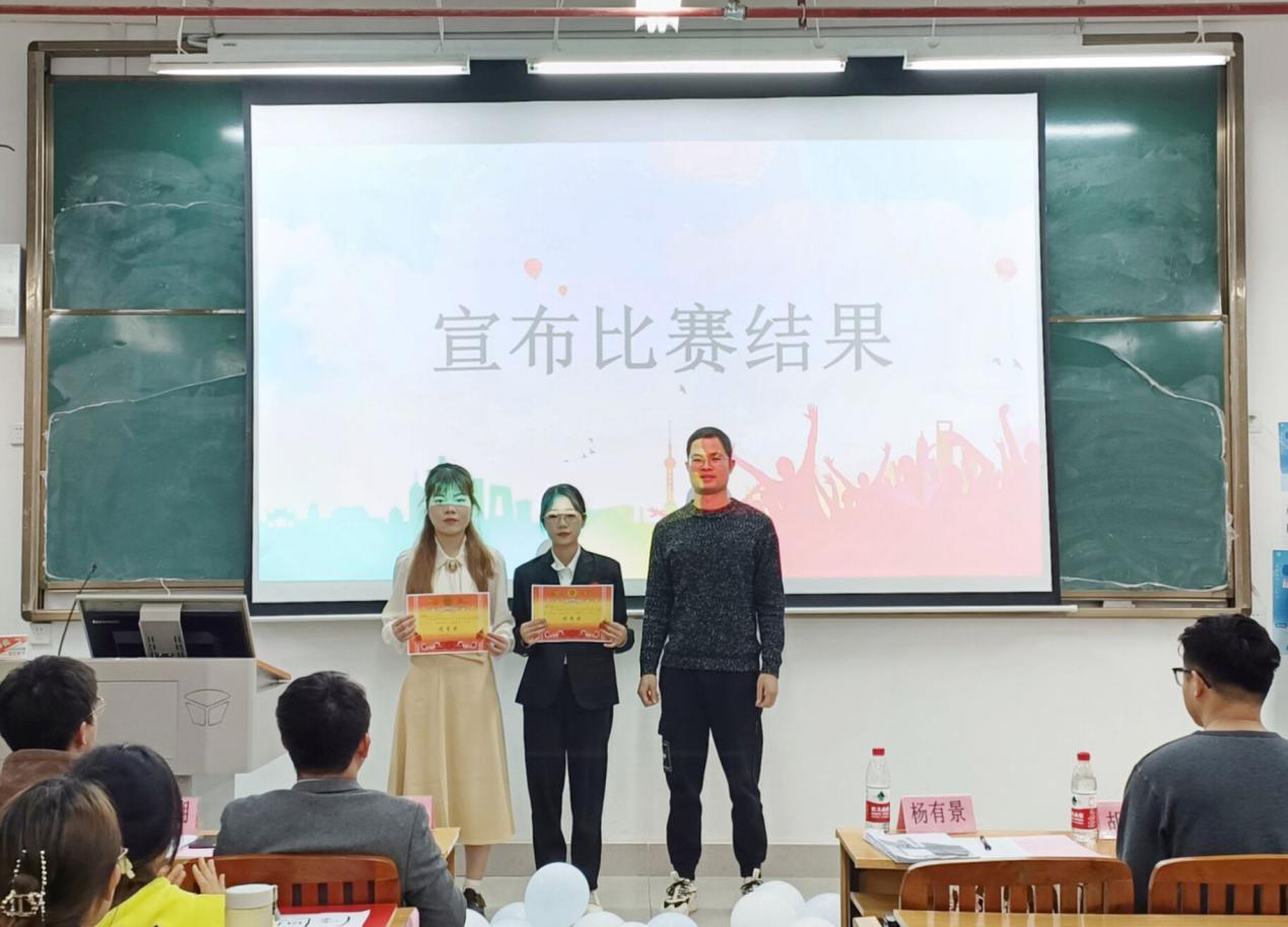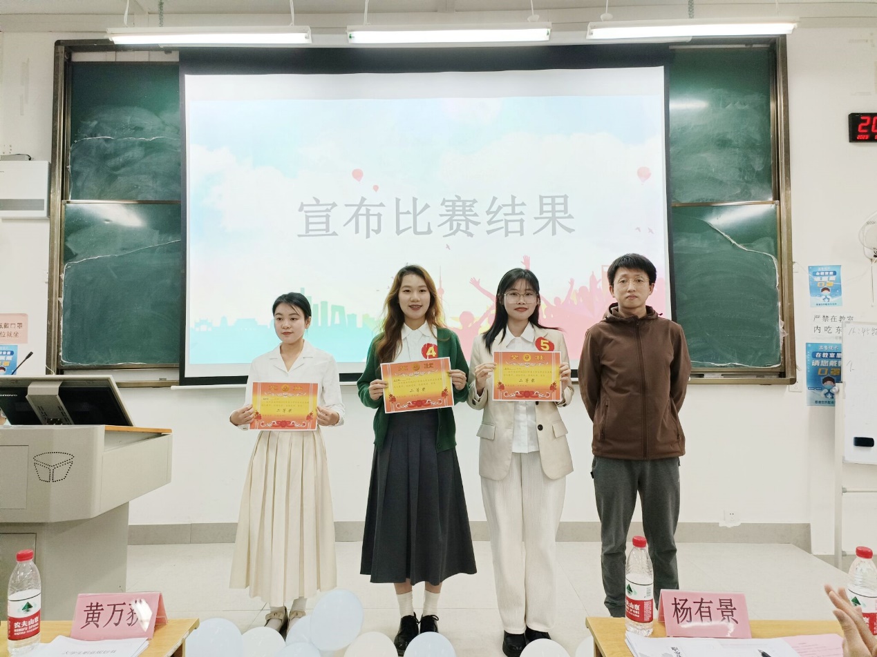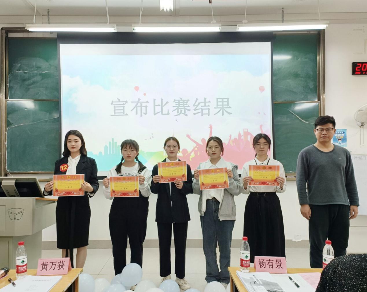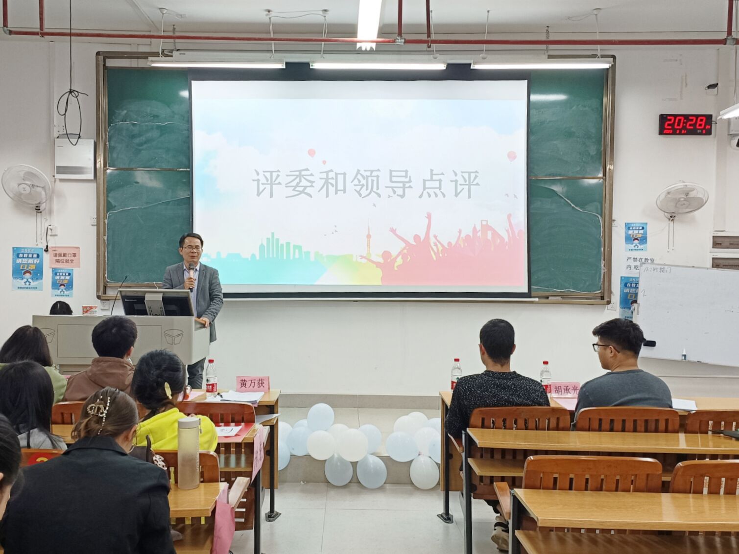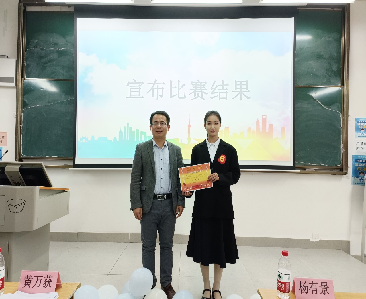 比赛开始,选手们轮流上台进行演说,在展示中,选手们充分展示出了择业的多样性,教育行业、翻译行业成了为许多选手的选择。比赛在激烈的角逐中落下了帷幕。选手们展示结束后,杨有景老师对比赛进行了点评,他称赞了选手们的积极表现,也指出了选手们存在的共性问题,表示希望同学们能在夯实专业基础的同时,不断提高自身实践能力与综合素养。随后,黄万获副书记作总结发言。他强调了大赛的意义,并鼓励我院学子认真做好职业规划,在奋斗中实现人生价值。本次大赛决出了一、二、三等奖与优秀奖,获得一等奖的20级翻译班杨宇欣同学将代表学院参加校级决赛。。