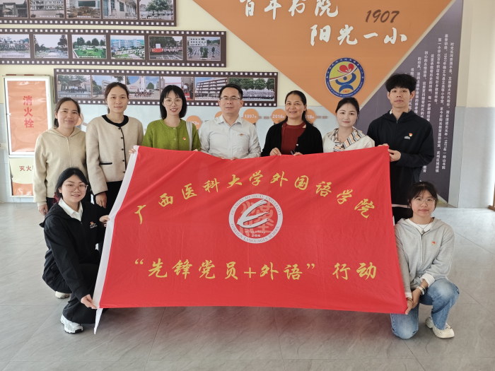 3月20日下午,广西医科大学外国语学院本科生党支部携手2025级翻译56班团支部,走进南宁市武鸣区城厢镇第一小学,为四年级学生开展“学雷锋·英语启蒙伴成长”英语支教志愿服务活动,以实际行动践行雷锋精神,发挥翻译专业语言优势,助力基层小学英语启蒙教育。